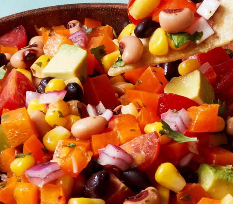 Not just a good snack, an excellent snack. This snack is packed with plant-based protein, complex carbs, healthy fats, vitamins and minerals. The beans amp up the protein levels, the more you add the better. The complex carbs show up in the beans and corn, replenishing your glycogen stores after a long run. The avocado contributes to the monosaturated fats which are aiding in heart health and provide sustained energy as you recover. And last but not least, all the veggies bring the vitamins and minerals help reduce inflammation and support immune health. Eat with whole wheat crackers or tortilla chips for a perfect post run snack.